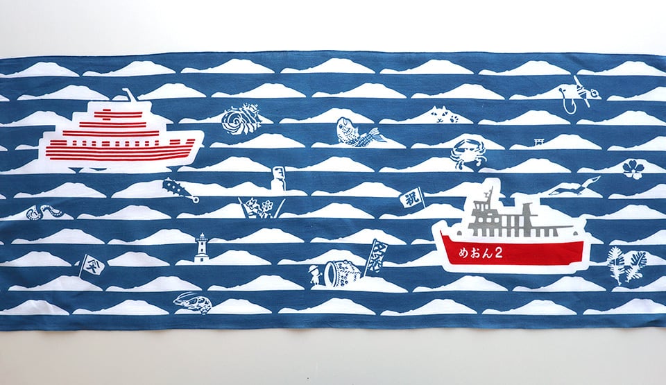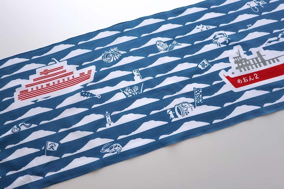男木女木のデザインが施された「瀬戸の手ぬぐい オギメギ」は、伝統的な技術と現代の感性が融合した逸品です。手作りによる染色が特徴で、一つ一つ異なる模様が心を癒す美しさを持っています。しっかりとしたコットン素材を使用しており、使い勝手も抜群です。